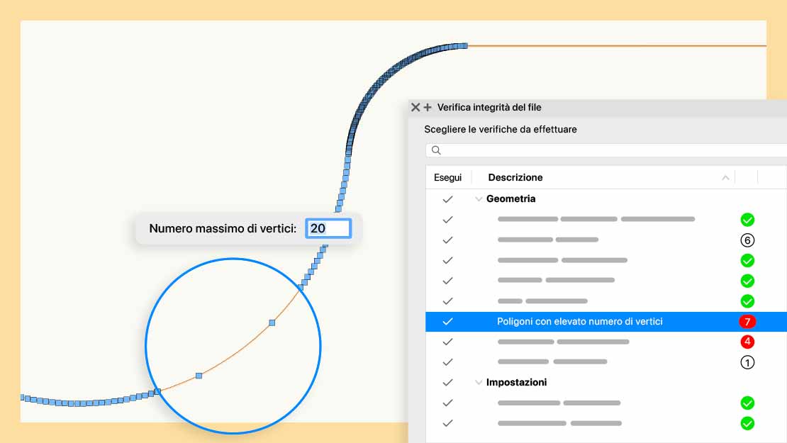 Mantieni i tuoi file Vectorworks in condizioni ottimali con la tavolozza Verifica integrità del file, disponibile solo per gli utenti con licenze in abbonamento. Esegui in automatico la scansione dei documenti alla ricerca di problemi nascosti di geometria e risorse, ricevi suggerimenti e risolvi le inefficienze con un solo clic. Dedica meno tempo alla risoluzione dei problemi e più tempo alla progettazione, sapendo che i tuoi progetti sono sempre ottimizzati per garantire le massime prestazioni. Questa funzione è disponibile solo con le licenze in abbonamento.