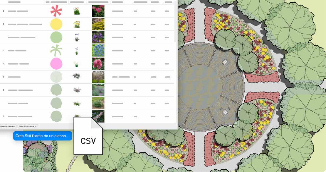 Riduci il tempo dedicato alla progettazione del verde con la nuova funzione Gestione Stili Pianta. Crea, modifica e personalizza l’intera libreria delle tue piante usando una moderna interfaccia in stile foglio di calcolo. Importa all’istante i dati dai vivai partner e scegli dove posizionare e modificare le piante, riducendo il lavoro manuale e garantendo che i dati delle tue piante siano sempre accurati e pronti per il progetto.