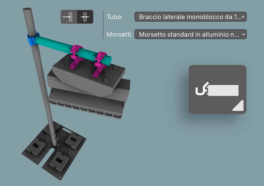 Aumenta la precisione della progettazione con strumenti dedicati per morsetti e bracci laterali. Posiziona, modifica e gestisci morsetti e tubi in diverse configurazioni, senza bisogno di soluzioni alternative. Crea disegni e conteggi di magazzino accurati, ma allo stesso tempo crea configurazioni di rigging creative, in modo da poter fornire progetti dettagliati e professionali con facilità ed efficienza.