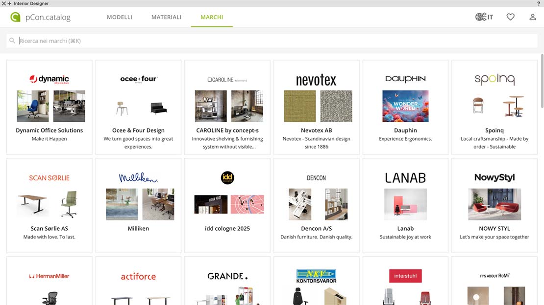 La nuova Tavolozza Web Interior Designer offre accesso gratuito ad arredi e materiali di numerosi e famosi produttori di elemento di arredo tramite la piattaforma online pCon.box. Questa piattaforma fornisce geometrie 2D e 3D, immagini e metadati che è possibile scaricare direttamente in Vectorworks in formato OFML e utilizzare nei propri progetti. Questa funzione è disponibile solo nella versione in italiano.